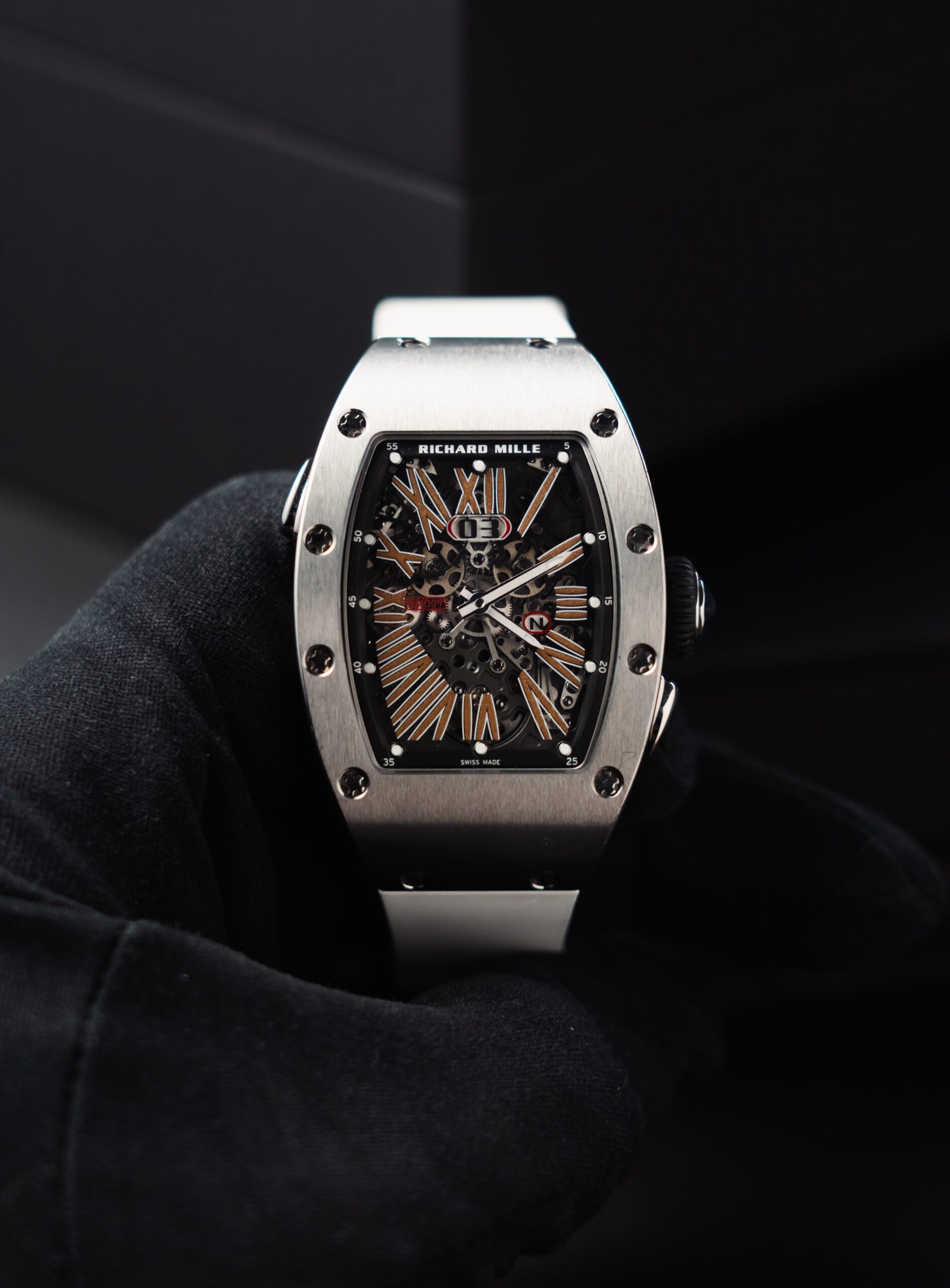 This Richard Mille RM037 TI watch from 2019 is in great condition and comes with its original card and box. A sophisticated timepiece known for its exceptional design and craftsmanship, this watch is sure to make a statement on any wrist.