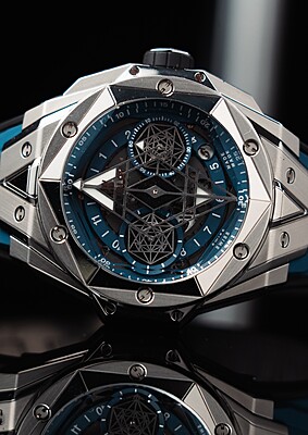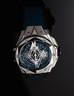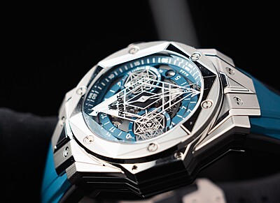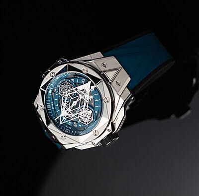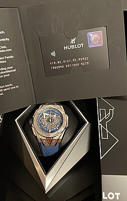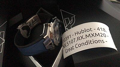 This Hublot watch model 418.NX.5107.RX.MXM20 is in great condition and comes with extra straps, making it a versatile choice for any occasion. It also includes the original card and box, ensuring both authenticity and safe storage.