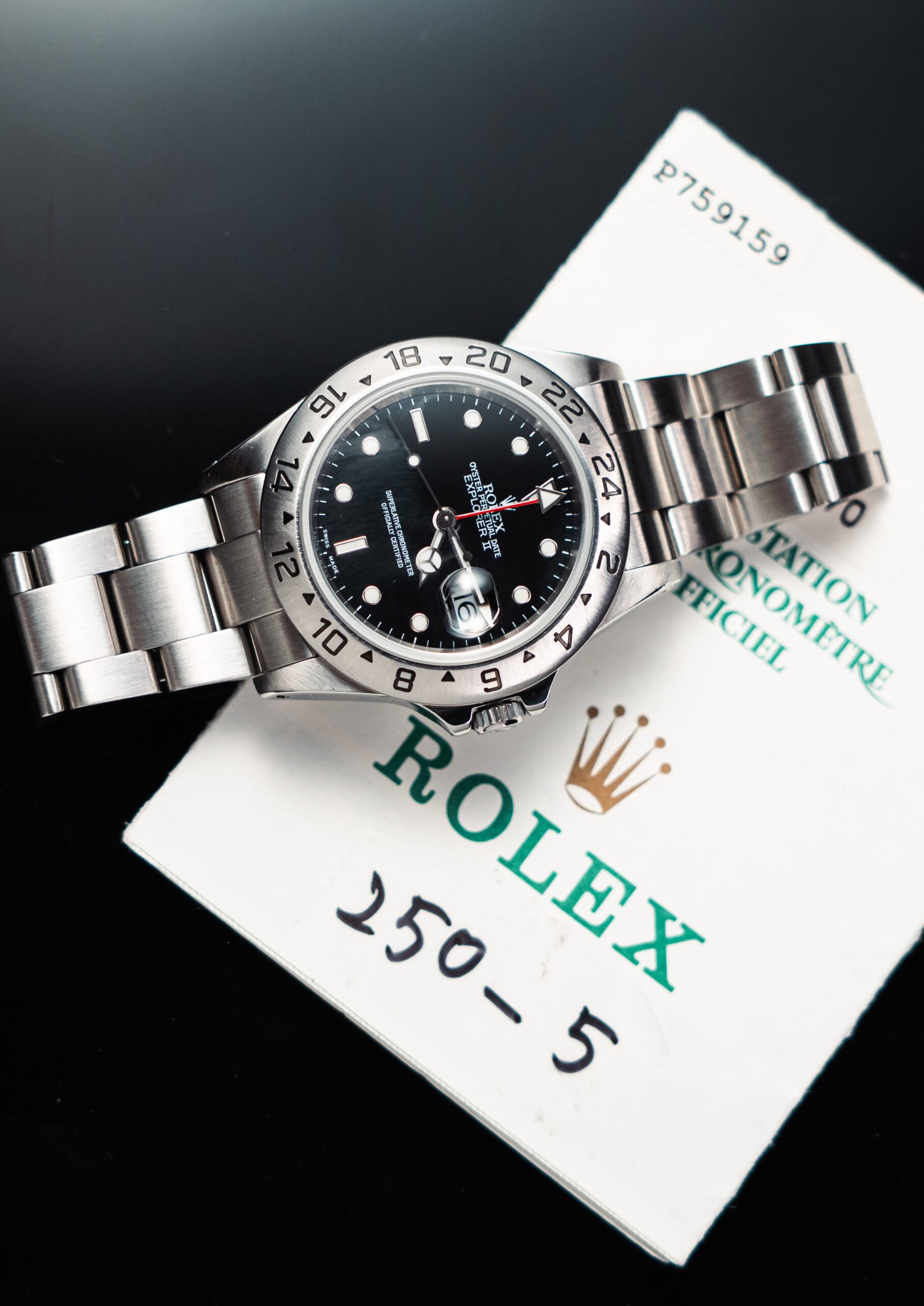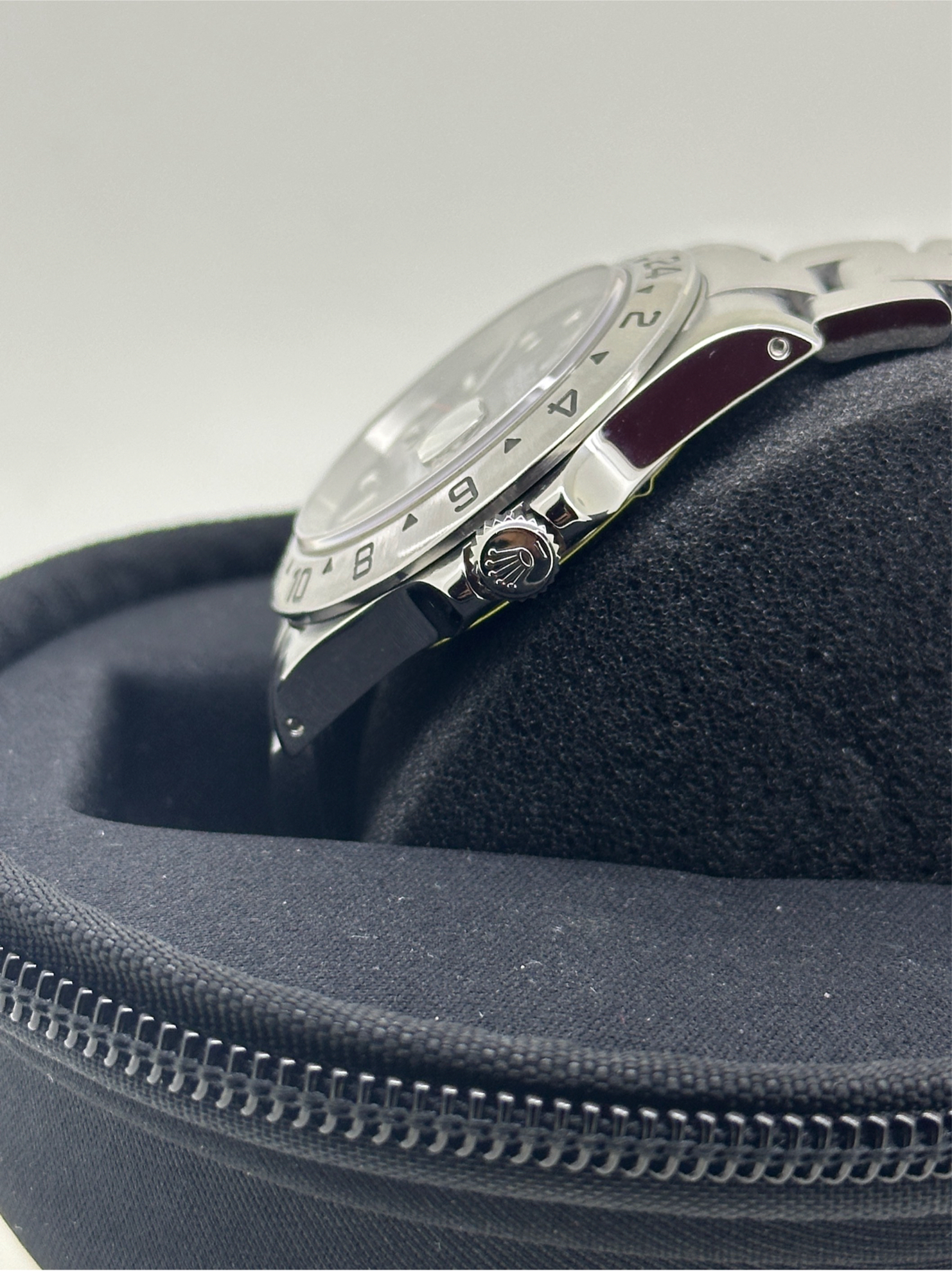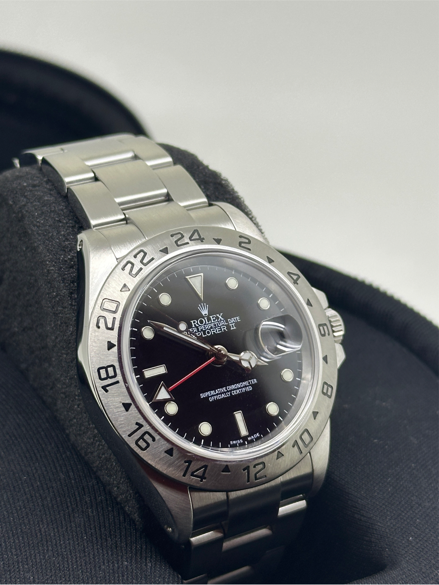 This Rolex 16570 Black watch from 2001 is a classic timepiece that exudes elegance and sophistication. The polished finish adds a touch of luxury, making it a versatile accessory for any occasion. It comes with papers, adding to its authenticity and value.