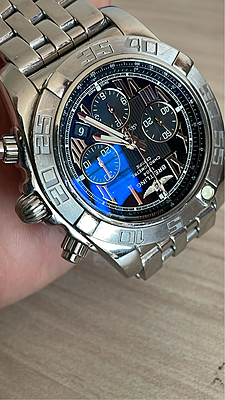 The Breitling AB0110 is a sophisticated and stylish chronograph watch that exemplifies the brand’s dedication to precision timekeeping. Boasting a sleek stainless steel case and bracelet, this timepiece features a black dial with silver subdials for a modern and sporty look. With its reliable automatic movement and impressive functionality, the Breitling AB0110 is a versatile…