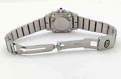 This Cartier Santos Bordeaux watch features a unique Spider Dial design, adding a touch of sophistication to its classic style. Although it is currently in need of repair, this timepiece still exudes luxury and elegance. The watch comes as is, without any additional accessories.