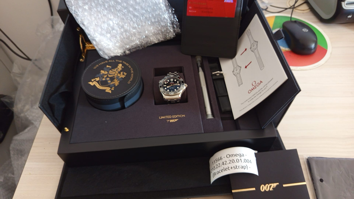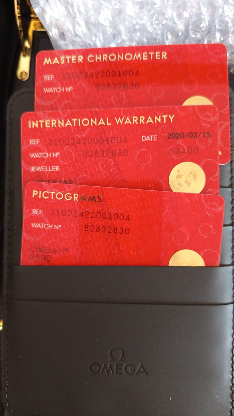This Omega watch (model number 210.22.42.20.01.004) is a versatile timepiece that comes with both a bracelet and a strap, offering options for different styles. It is in retail-ready condition, complete with its original card and box, making it a perfect choice for watch enthusiasts looking for a high-quality and well-presented timepiece.