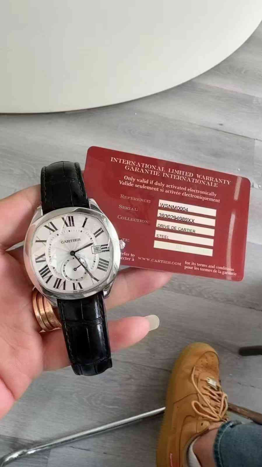 This Cartier WSNM0004 watch is a pre-owned timepiece in excellent condition with only minor signs of usage. It comes with its original card and box, making it a great choice for watch enthusiasts looking for a luxurious and stylish accessory.