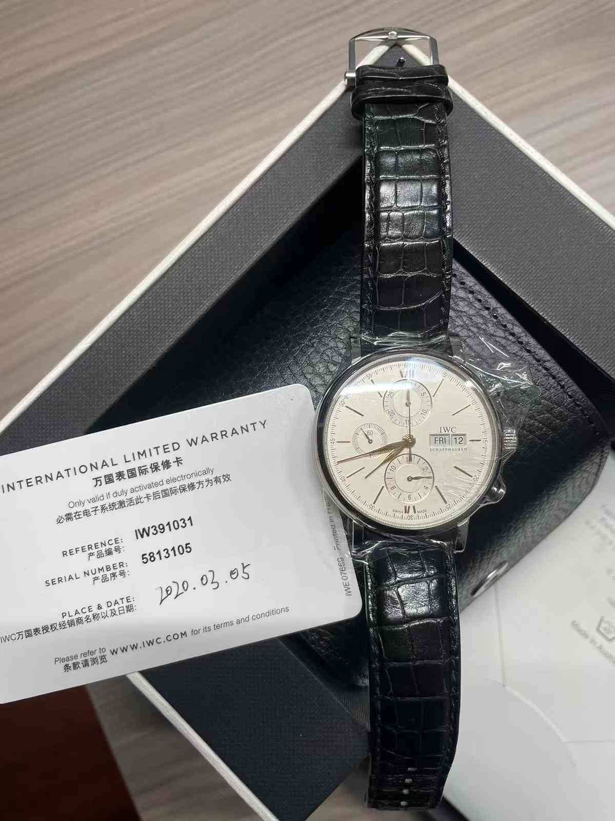 This IWC IW391031 watch is a pre-owned timepiece in excellent condition with only minor signs of usage. It comes with its original card and box, making it a valuable addition to any watch collection.