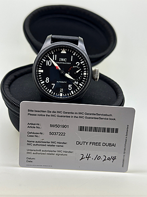 This IWC IW501901 watch has been serviced and comes with the original card, ensuring its authenticity and provenance. A reliable and stylish timepiece that offers both performance and sophistication.