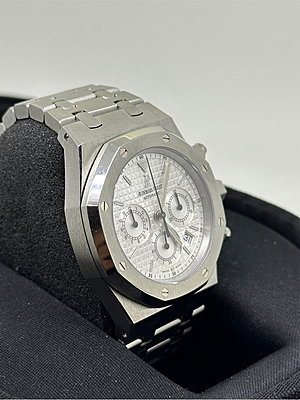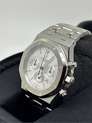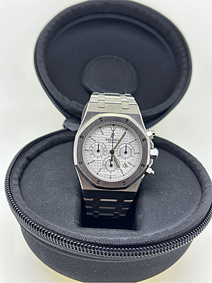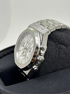 This Audemars Piguet watch, model 25860ST in white with 20 links, is a pre-owned timepiece with minor signs of usage. It is being sold as watch only, perfect for watch enthusiasts looking to add a prestigious and elegant piece to their collection.