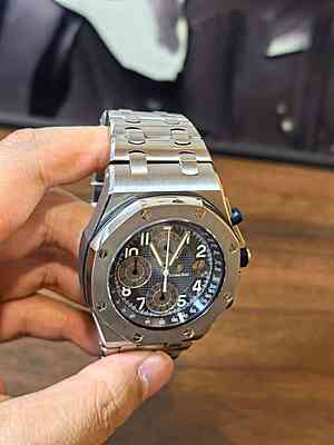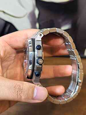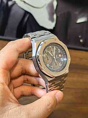 This Audemars Piguet 25721TI timepiece is a pre-owned watch in excellent condition with only minor signs of previous usage. The watch comes on its own and is a stylish and sophisticated choice for watch connoisseurs.