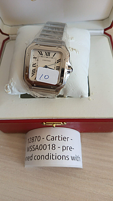 Introducing the Cartier WSSA0018, a sophisticated timepiece that exudes luxury and style. This pre-owned watch is in excellent condition with only minor signs of usage, making it a great find for watch enthusiasts. It comes complete with its original card and box, adding to its value and appeal. Make a statement with this elegant Cartier…