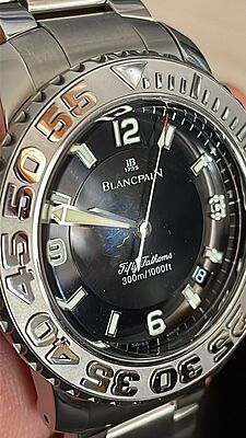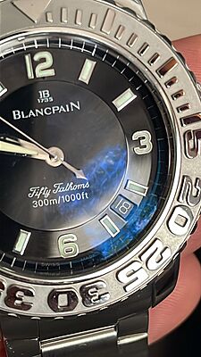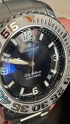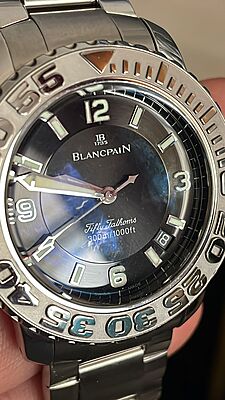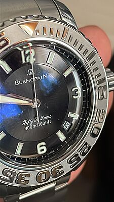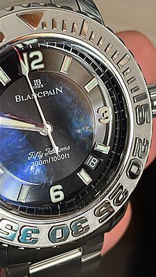 This Blancpain Trilogy Fifty Fathoms watch is a pre-owned timepiece with minor signs of usage. Featuring a classic and elegant design, this watch is perfect for those who appreciate quality craftsmanship and timeless style. This item includes the watch only.