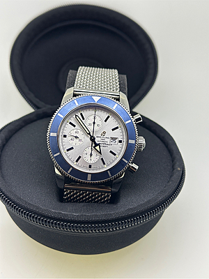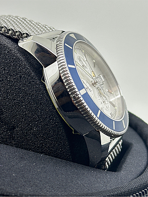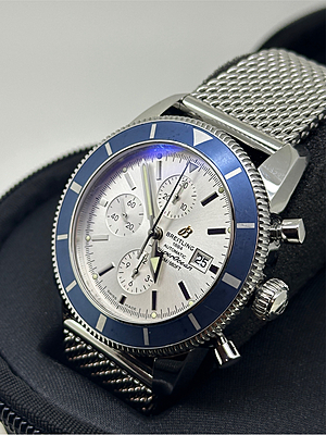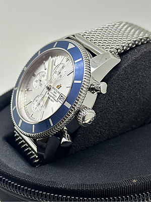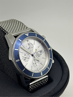 This Breitling A13320 watch has been meticulously serviced and polished, making it look and function like new. It comes complete with its original card and box, adding to its collectible appeal. Stylish and reliable, this timepiece is a must-have for watch enthusiasts.