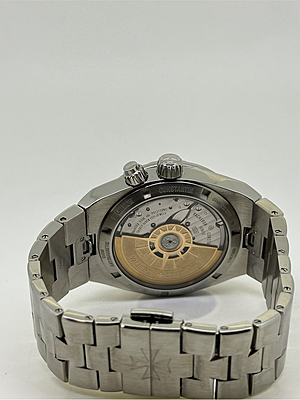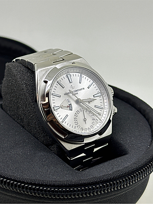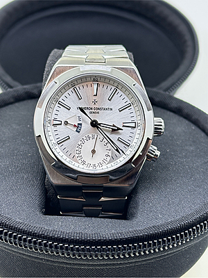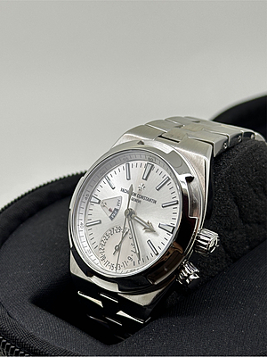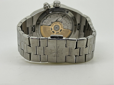 This Vacheron Constantin timepiece, model 7900V, boasts a sleek white design that exudes elegance. Crafted in 2018, this watch has been meticulously serviced and polished to ensure its pristine condition. It comes complete with its original card and box, making it a desirable addition to any watch collection.