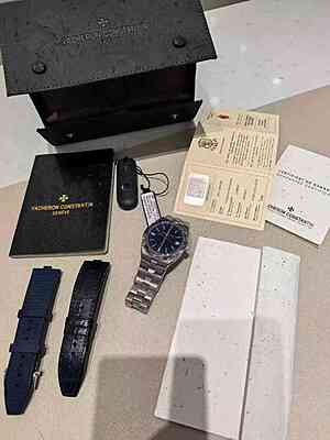 Introducing the Vacheron Constantin 4500V in a striking blue color from 2016. This pre-owned timepiece is in excellent condition with only minor signs of usage. Complete with its card and box, this watch is a timeless addition to any collection, combining elegance and sophistication effortlessly.