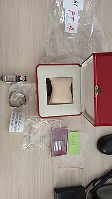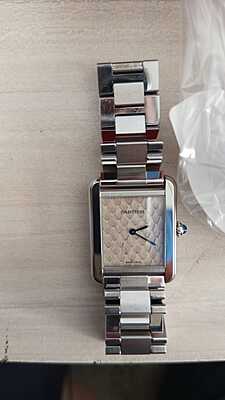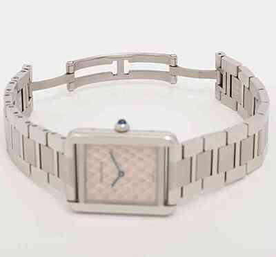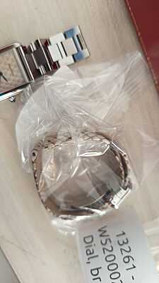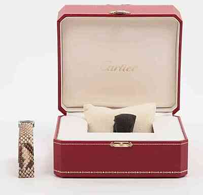 This Cartier W5200020 timepiece features a unique Python dial and comes with both a bracelet and an additional strap. Despite being pre-owned, it is in excellent condition with only minor signs of usage. Complete with its original card and box, this watch offers a luxurious and distinctive aesthetic for any wearer.