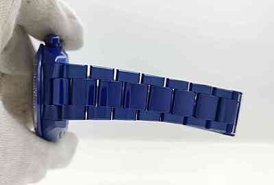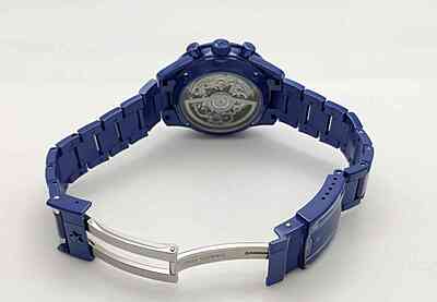 This Zenith watch is a special 160th Anniversary Edition featuring a stunning blue ceramic design. In “like new” condition, it comes with its original card and box, making it a valuable addition to any watch collection.