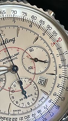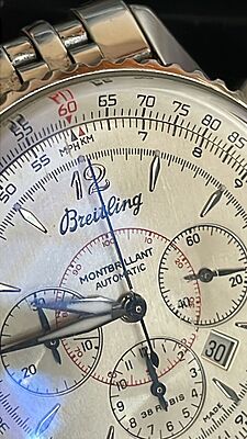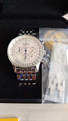 This Breitling A41330 watch has been professionally serviced and polished, ensuring its excellent condition. It comes with its original card and box, making it a complete and desirable timepiece for any watch enthusiast.