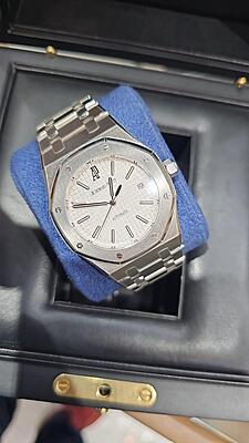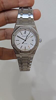 Introducing the Audemars Piguet 15300st watch in a classic white colorway. This pre-owned timepiece is in excellent condition with only minor signs of previous usage. The watch comes with a sleek design and is accompanied by a watch only. Note that it is minus 3 links, making it customizable for the perfect fit.