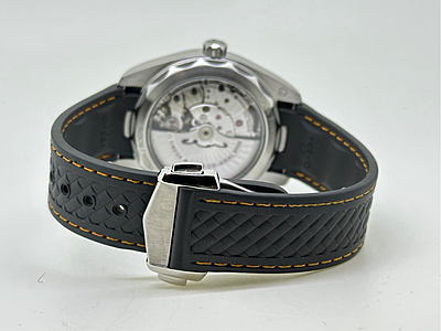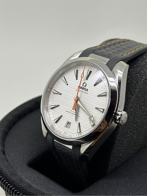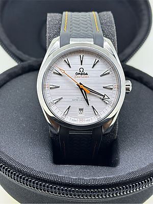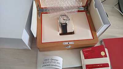 This Omega watch, model number 220.12.41.21.02.002, features a polished finish and comes with its original card and box, making it a complete set for any collector or enthusiast.