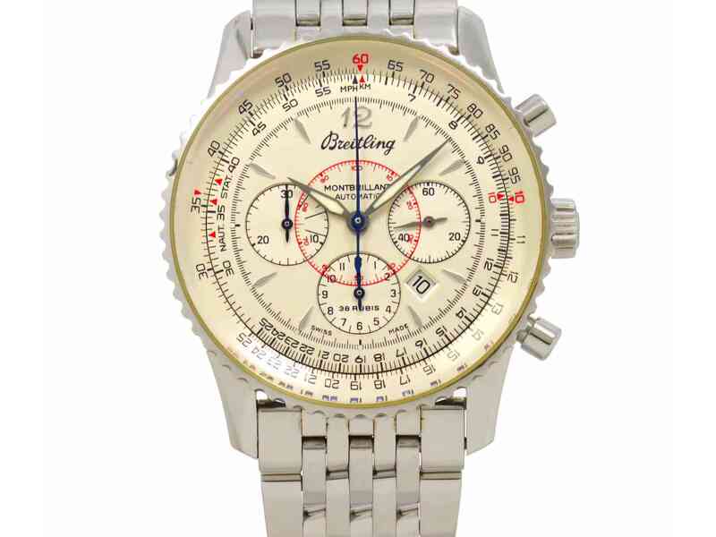 This Breitling A41330 timepiece is a pre-owned watch that shows minor signs of usage, making it a great choice for those looking for a luxury watch at a more accessible price point. It comes with its original card and box, adding to its collectible value.