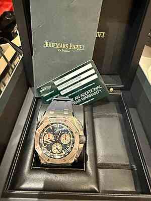 This Audemars Piguet Royal Oak Offshore Chronograph is a stunning timepiece that exudes luxury and style. With a striking blue dial and a titanium case, this 2021 model is a modern and sophisticated choice for watch enthusiasts. The watch has been serviced and comes with its original card and box, ensuring both its authenticity and…