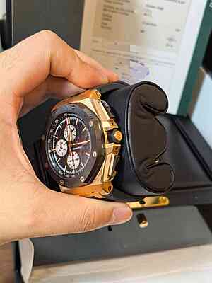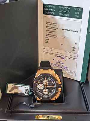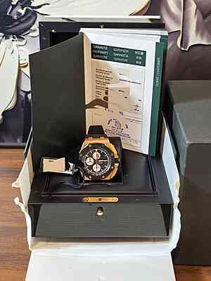 This Audemars Piguet 26400RO from 2013 is a pre-owned timepiece in excellent condition with only minor signs of usage. It comes with its original card and box, making it a complete and desirable addition to any watch collection.