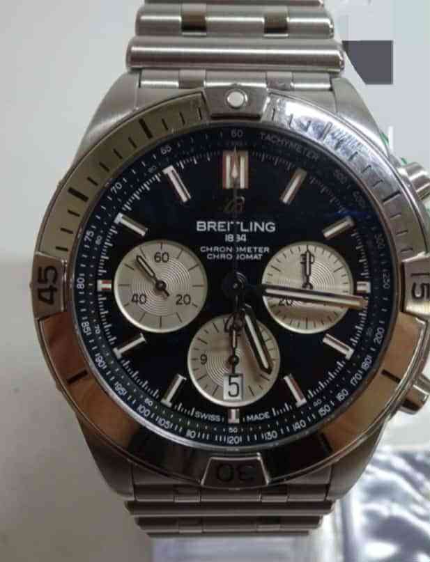 This Breitling AB0134 watch is a pre-owned timepiece in excellent condition with only minor signs of usage. It comes with the original card and box, adding to its collectible value. Perfect for watch enthusiasts looking to add a high-quality piece to their collection.