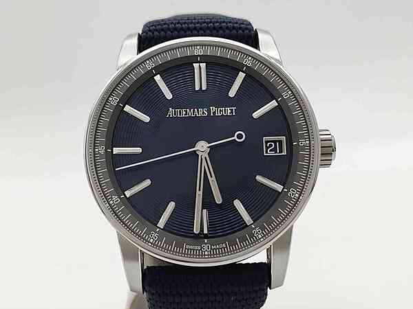 This pre-owned Audemars Piguet 15210ST watch in a striking blue color is in excellent condition with minor signs of usage. It comes with the original card and box, making it a great addition to any watch collection.