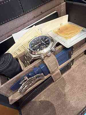 This Vacheron Constantin 5500V watch from 2018 is a stunning piece in a vibrant blue color. It features a polished finish and comes complete with its original card and box, making it a great addition to any watch collection.