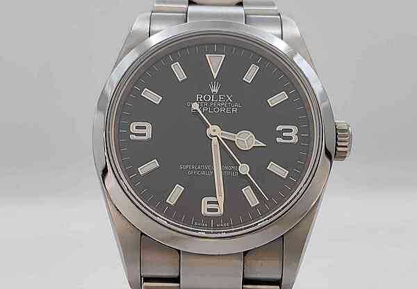 This Rolex 114270 is a pre-owned timepiece that has been well-maintained with minor signs of usage. It comes with the original card, adding to its authenticity and provenance. Ideal for watch enthusiasts looking for a classic and reliable Rolex model.